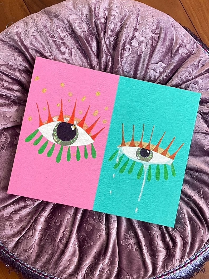 小さいサイズの作品をお探しの方、カラフル抽象画をお探しの方、お部屋のアクセントになる作品をお探しの方におススメです。