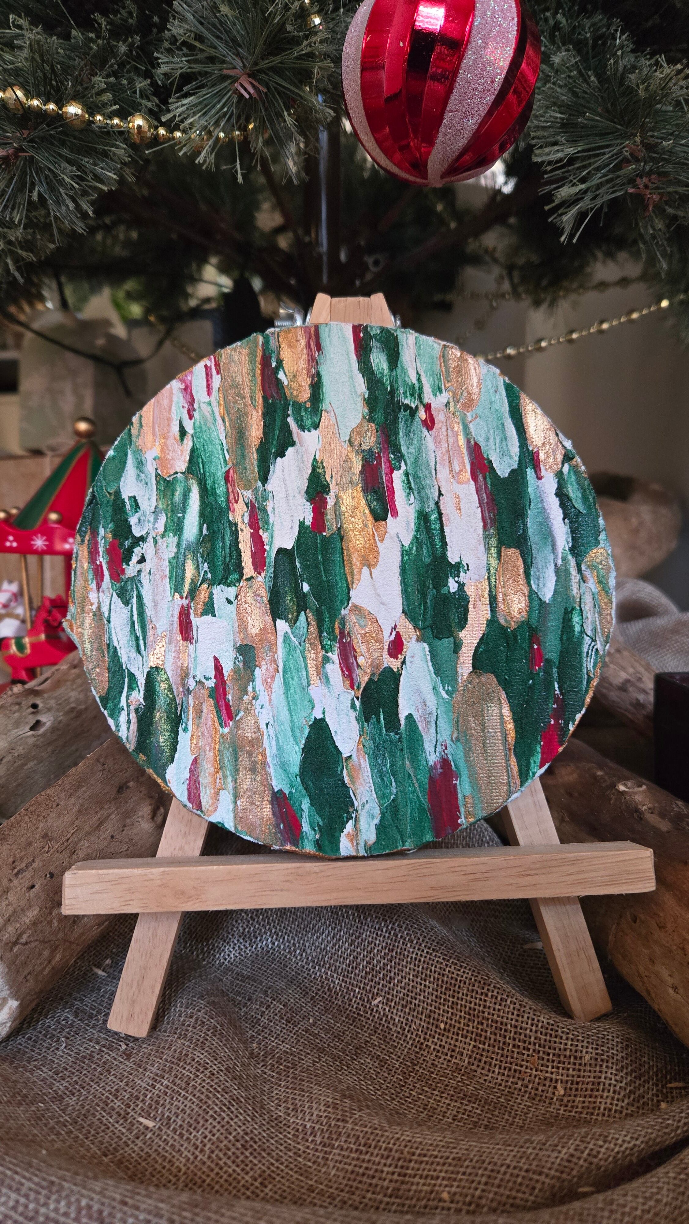 christmasテクスチャー抽象画【丸キャンバスA】